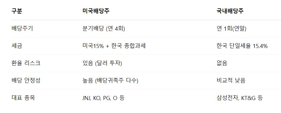 💸 3. 미국배당주 vs 국내배당주 비교표