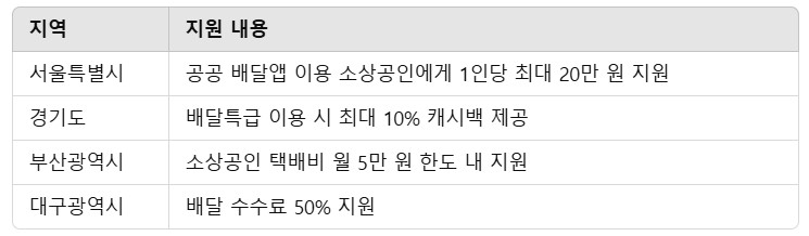 - 지역사랑상품권 활용 배달비 지원: 지역 화폐를 통한 배달비 할인 제공