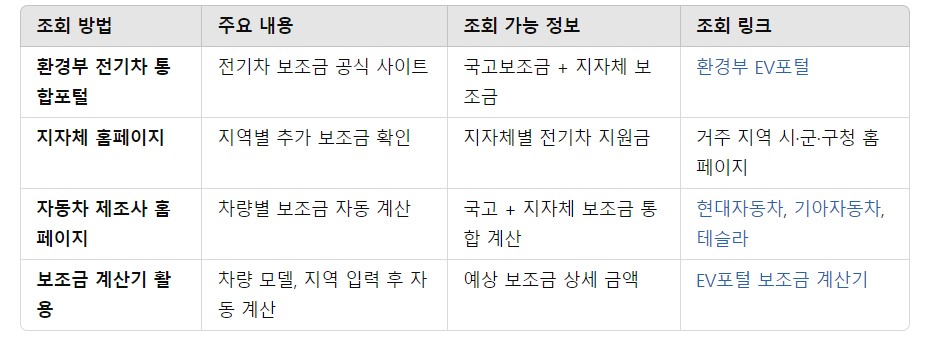 2025년 전기차 보조금은 환경부, 지자체, 자동차 제조사 사이트에서 쉽게 조회할 수 있습니다. 보조금 지원 한도가 정해져 있기 때문에 빠르게 조회하고 신청하는 것이 중요합니다. 전기차 구매를 고민하고 있다면, 지금 바로 보조금 조회부터 해보세요!