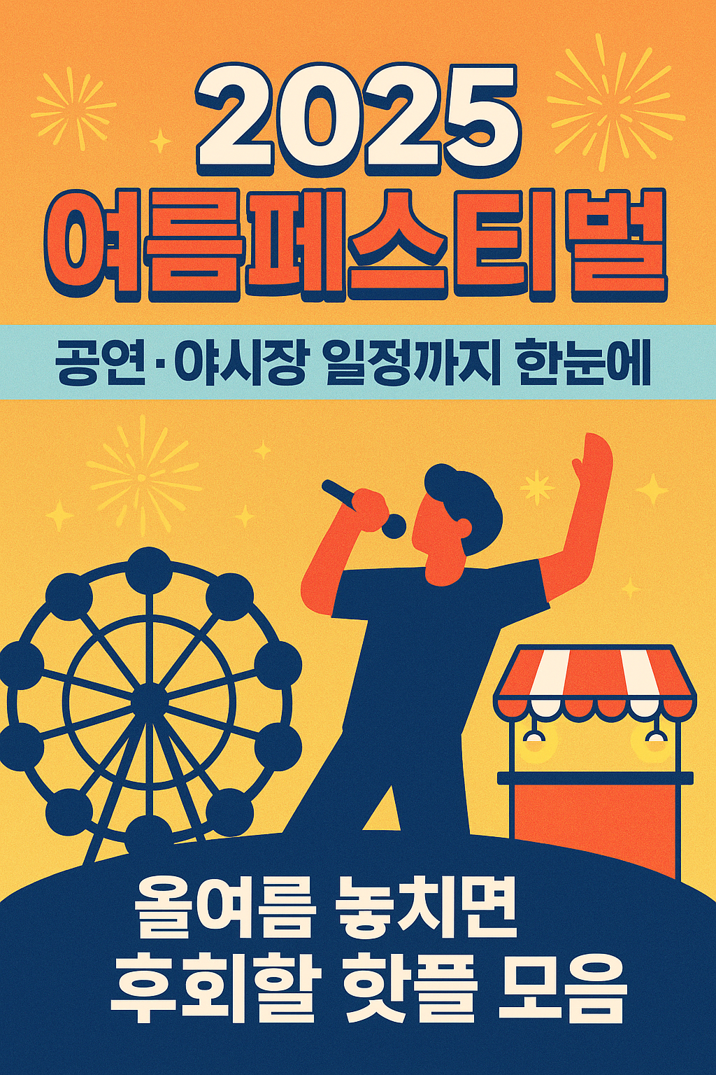 2025 여름페스티벌은 단순한 공연이 아닙니다. 전국의 문화, 지역 특색, 여름밤 감성을 모두 담은 종합 선물세트예요. 특히 공연 일정과 야시장 일정을 함께 체크해 두면, 올여름 주말마다 갈 곳이 넘쳐날 거예요.
