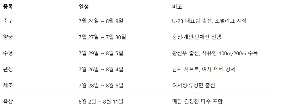 📅 2025 파리올림픽 경기 일정 한눈에 보기